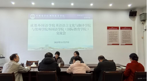 (通讯员:刘天才)2025年11月27日,为深化外语学科建设、共探产教融合新路径,成都外国语学院英语语言与翻译学院与贺州学院外国语学院(国际教育学院)联合举办学习交流会。双方围绕学院发展规划、人才培养等议题展开深入交流,重点分享了“外语+跨境电子商务”复合型人才培养的创新实践,为两校外语教育高质量发展注入新动能。