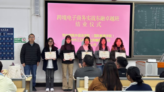 (通讯员:张悦)近日,贺州学院外国语学院(国际教育学院)与贺州市三只狼文化传媒有限公司联合举办的跨境电子商务实战东融卓越班结业典礼圆满落幕。这场典礼既是校企协同育人成果的集中展示,也是同学们从“实战课堂”迈向“职场赛场”的崭新起点,为双方首次联合培养项目画上圆满句号。