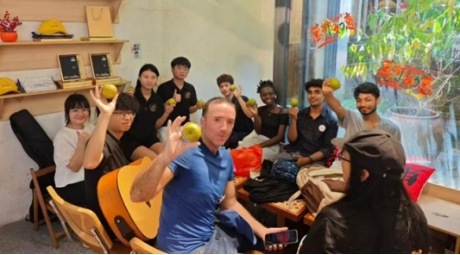 7月9日,团队转战深坡村。队员携手外国友人,将英语教学融入乡村生活,搭配安全知识讲解,提升知识传递趣味性。队员还教村民使用智能手机与移动支付,帮助老人跨越“数字鸿沟”,同时探访乡土文化,听长辈讲述书院故事,协助筹备祭祖活动并为蒋氏学子送祝福。队员配合富川融媒采访,向外界展示深坡村魅力。队员还在村民家中陪孩子练英语、打扫院落、倾听古村往事。