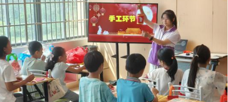 6月27日,团队首站抵达黄姚古镇。队员在古镇门口化身女书文化使者,讲解女书的起源、造字、刺绣等知识,并组织游客制作女书漆扇。古老字符与现代漆艺结合,让游客在亲手创作中感受非遗魅力,推动“藏在深闺”的女书“活”起来。随后团队走进安置小区,打造“文化+成长”课堂,让文化种子与安全意识同步扎根孩子心中。